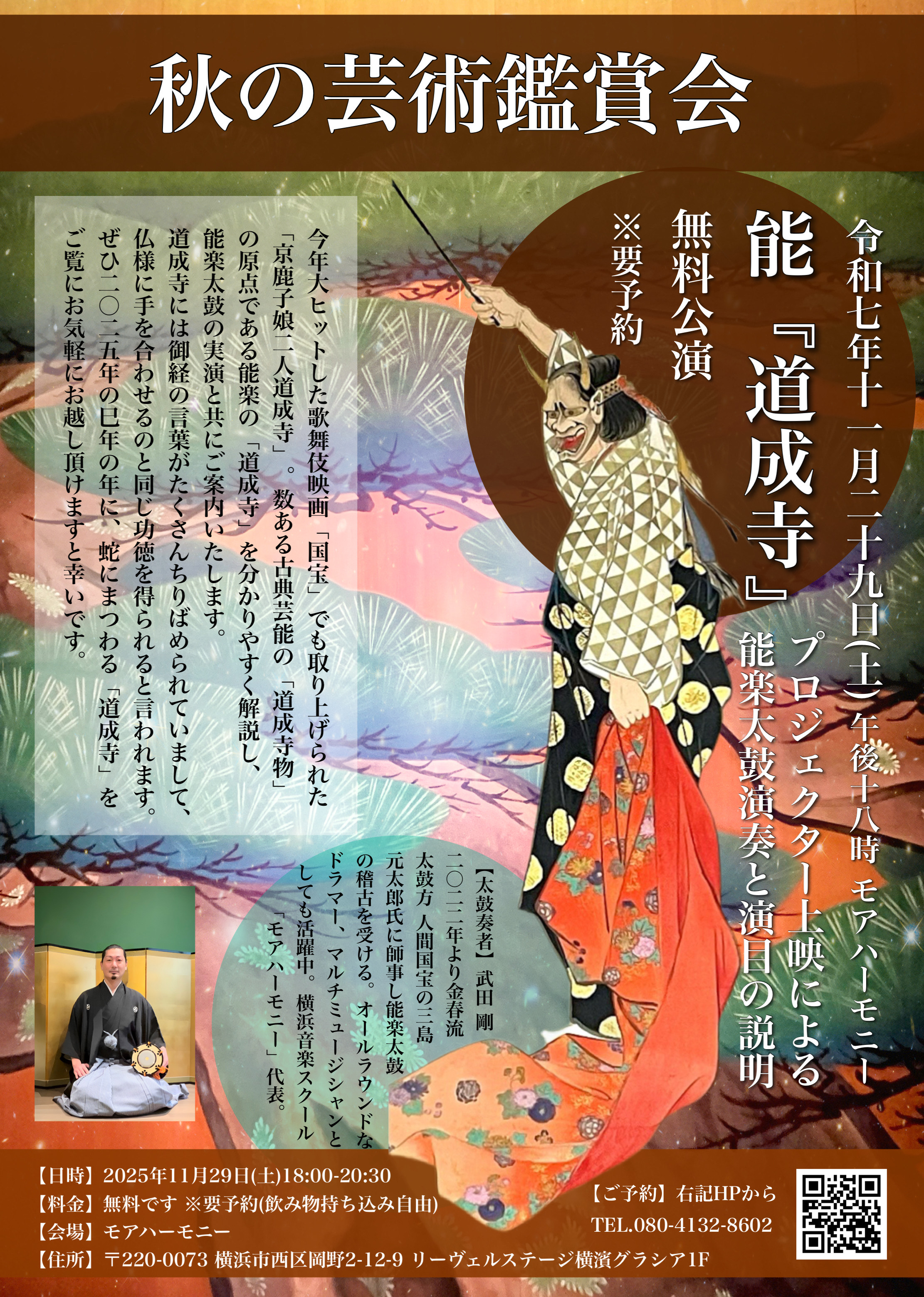 ☆秋ã®èŠ¸è¡“é‘‘è³žä¼šãƒ»èƒ½ã€Žé“æˆå¯ºã€11/29(土)無料公演☆